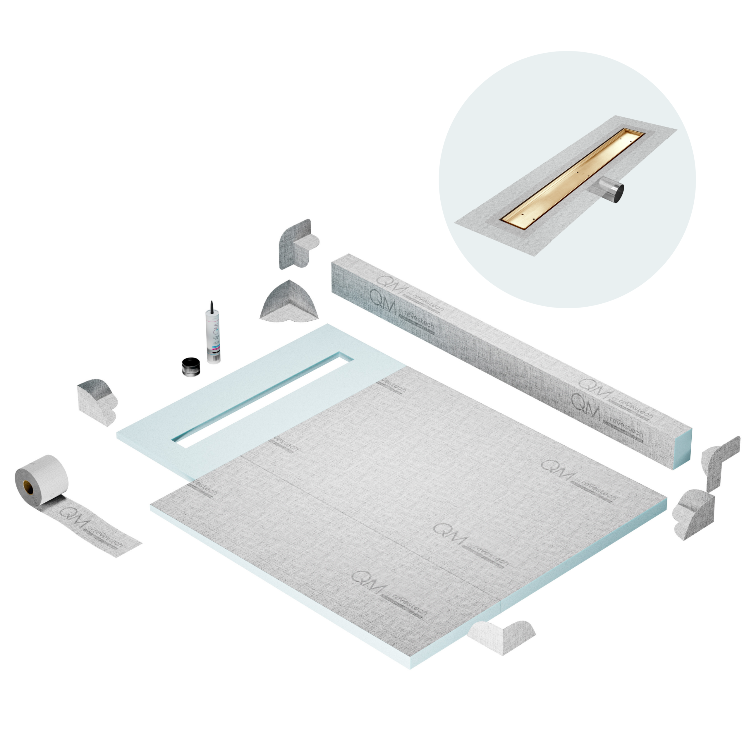 Committed to sustainable construction, avoiding environmental impact, and ensuring a healthy environment. QM shower pan and waterproofing membranes are 100% recyclable.
