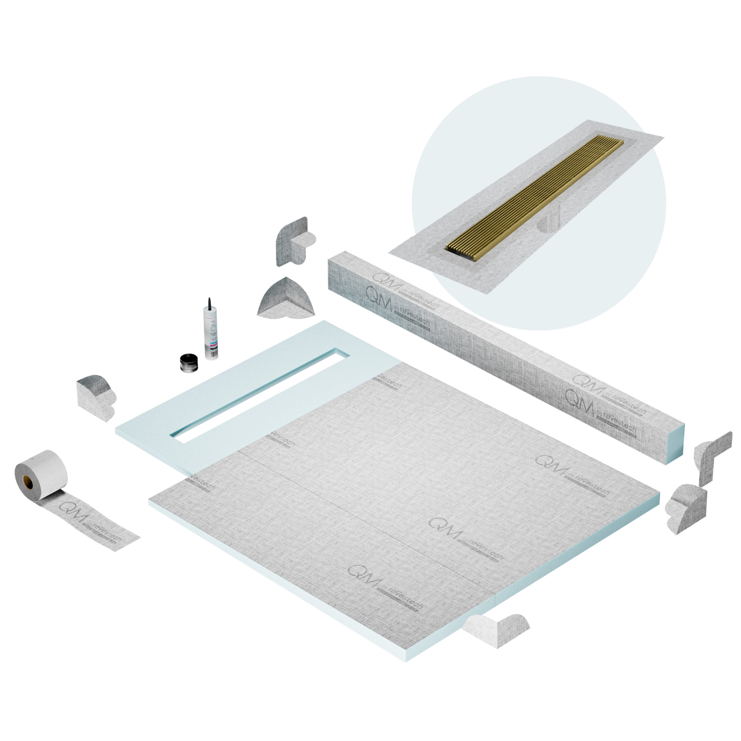 QM Shower Pan Kit 40″ with a 32″ Wedgewire Linear Drain Flange Edge in Gold