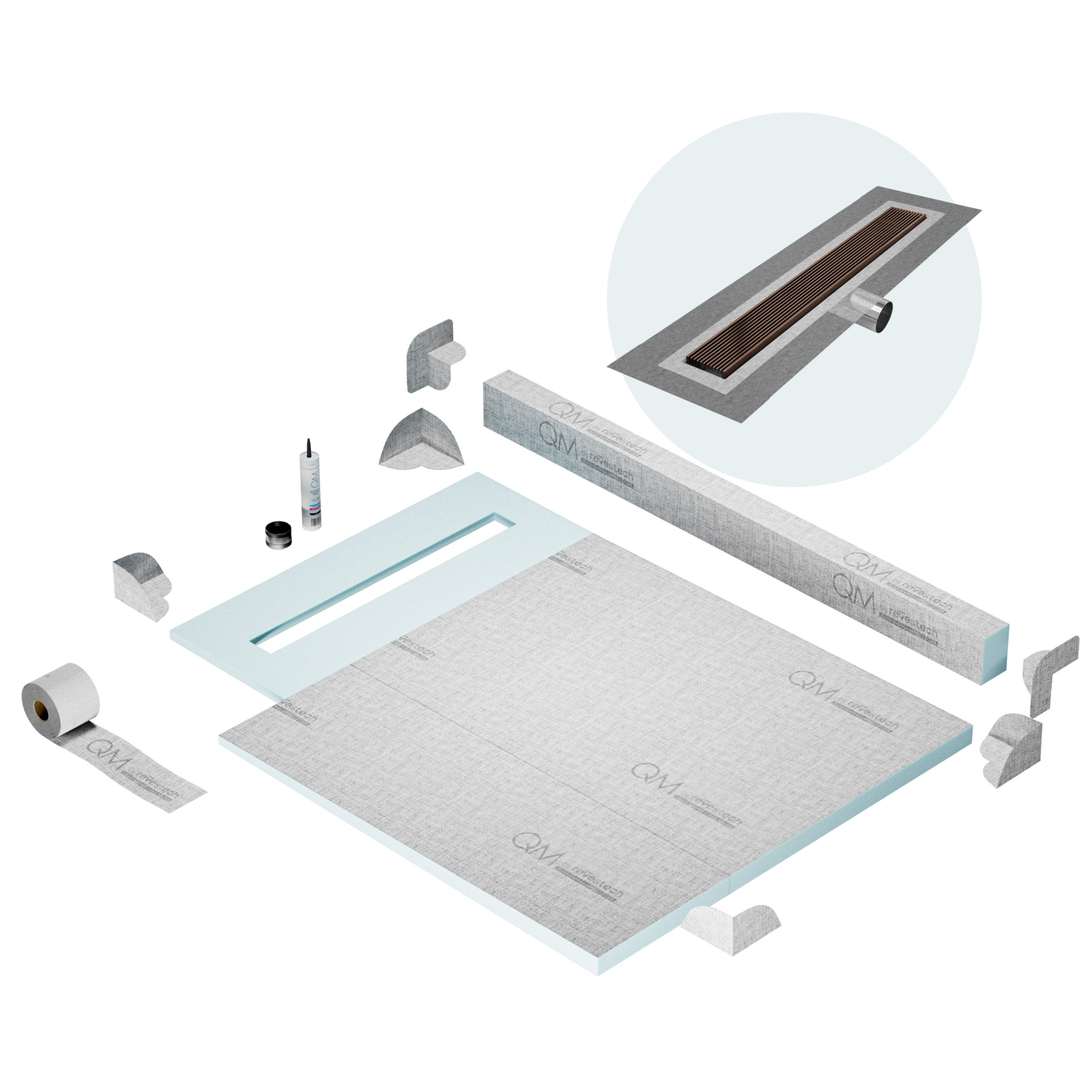 Pre-sloped shower board integrated seamlessly with Superdry waterproofing. It is the ideal solution for a mortar-free tiled shower. Quick and easy to install. No risk of mistaking the slope.