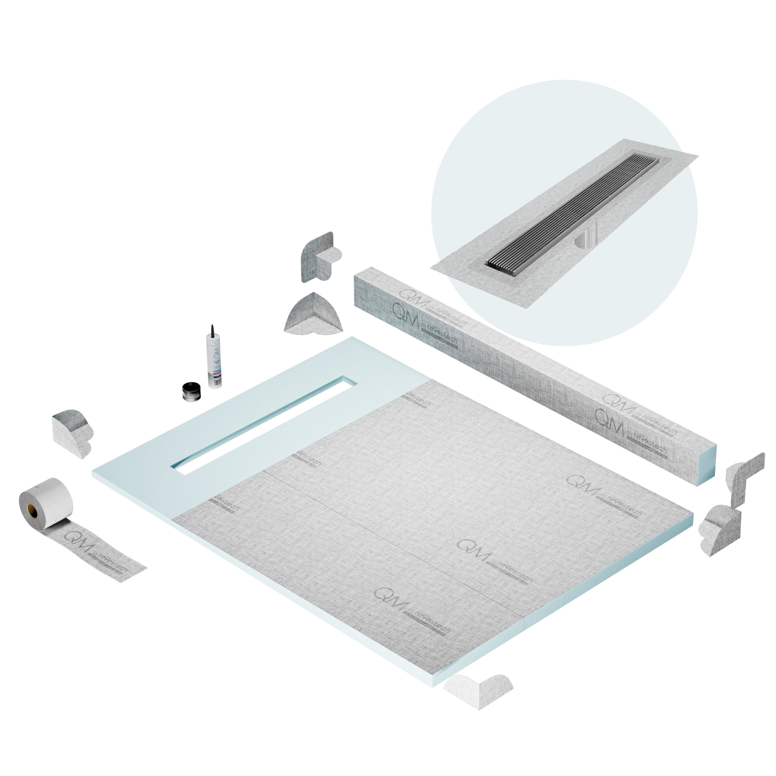 Committed to sustainable construction, avoiding environmental impact, and ensuring a healthy environment. QM shower pan and waterproofing membranes are 100% recyclable.