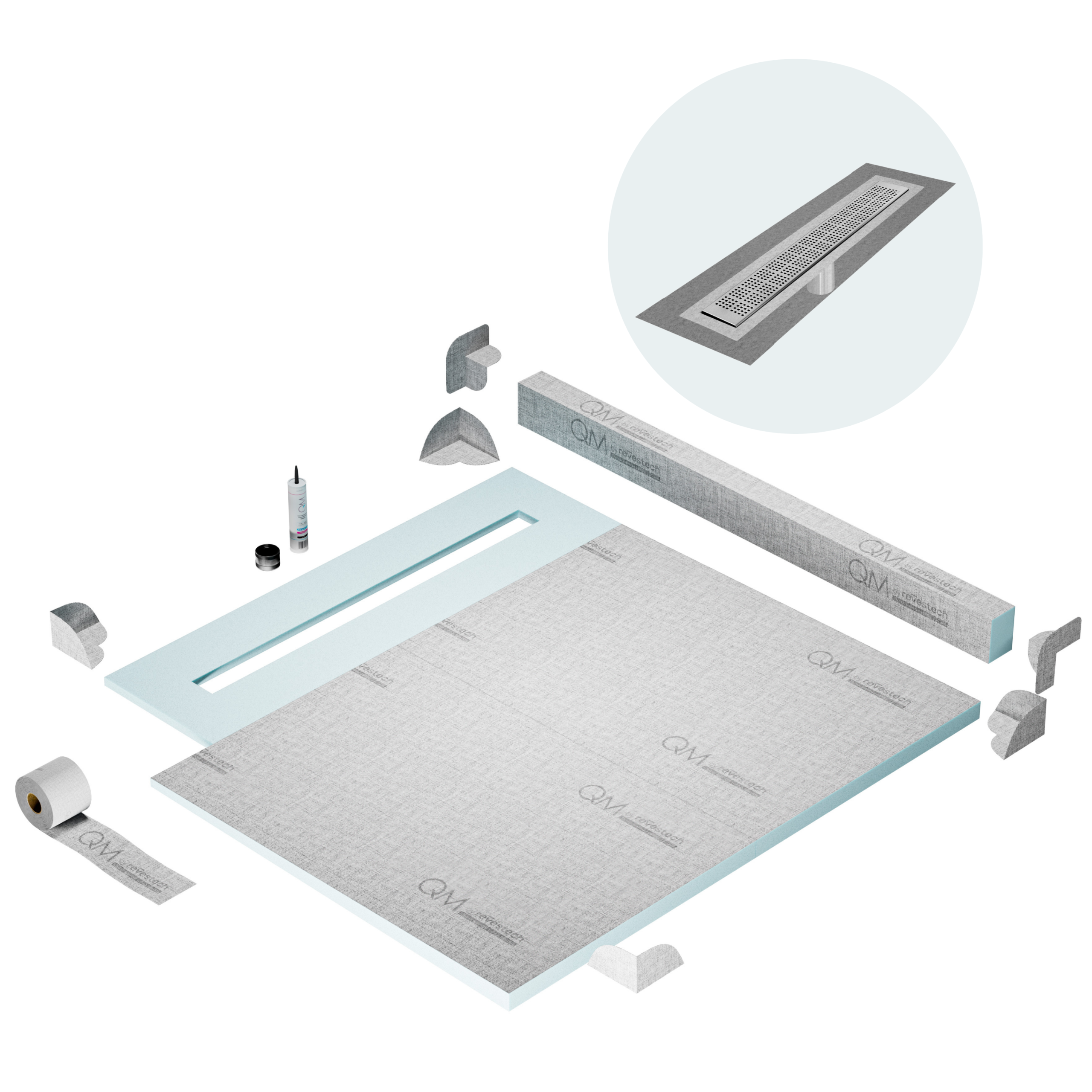 Pre-sloped shower board integrated seamlessly with Superdry waterproofing. It is the ideal solution for a mortar-free tiled shower. Quick and easy to install. No risk of mistaking the slope.