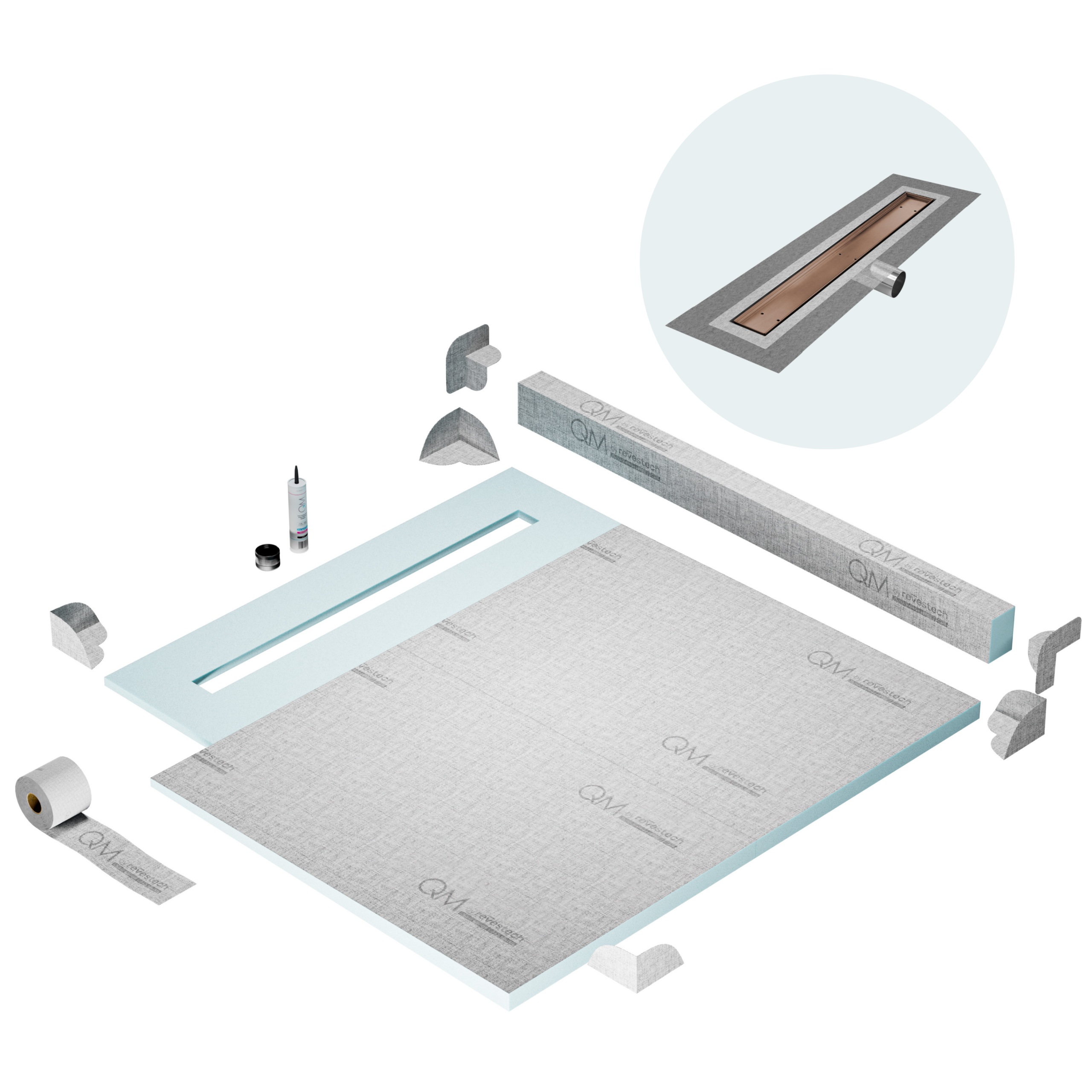 Committed to sustainable construction, avoiding environmental impact, and ensuring a healthy environment. QM shower pan and waterproofing membranes are 100% recyclable.