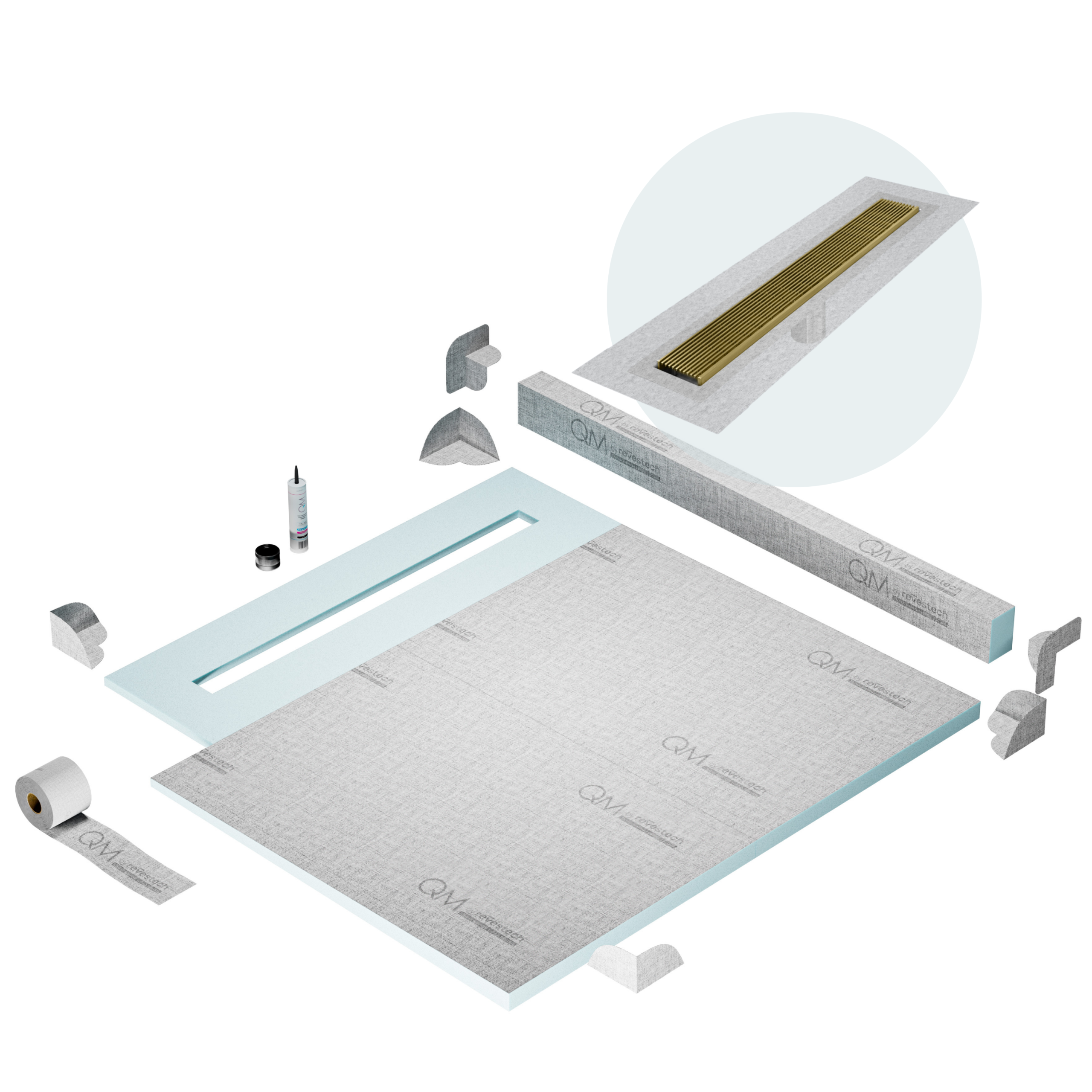 Pre-sloped shower board integrated seamlessly with Superdry waterproofing. It is the ideal solution for a mortar-free tiled shower. Quick and easy to install. No risk of mistaking the slope.