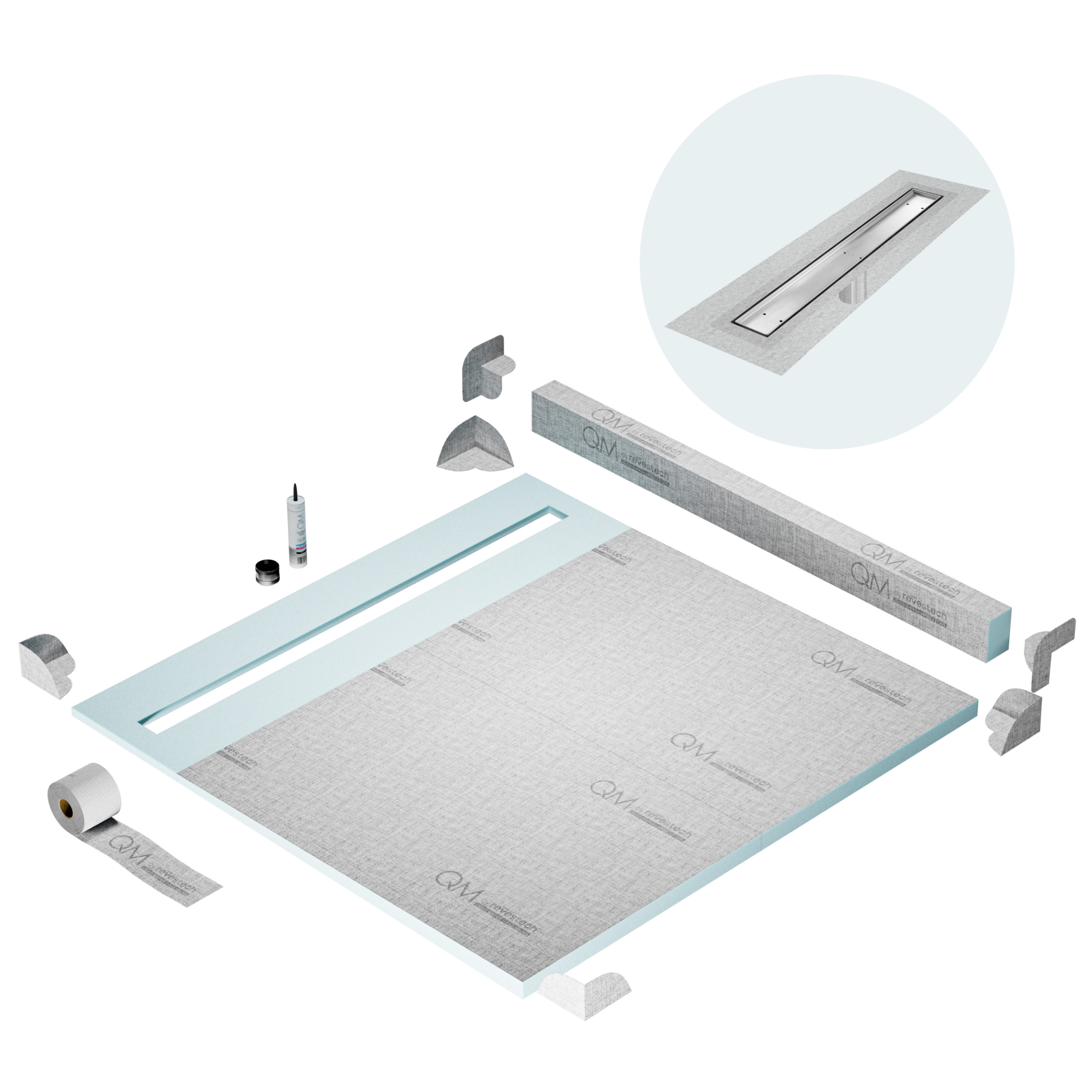 Linear Drain Kits Include:– Waterproofed Shower Pan in your desired size