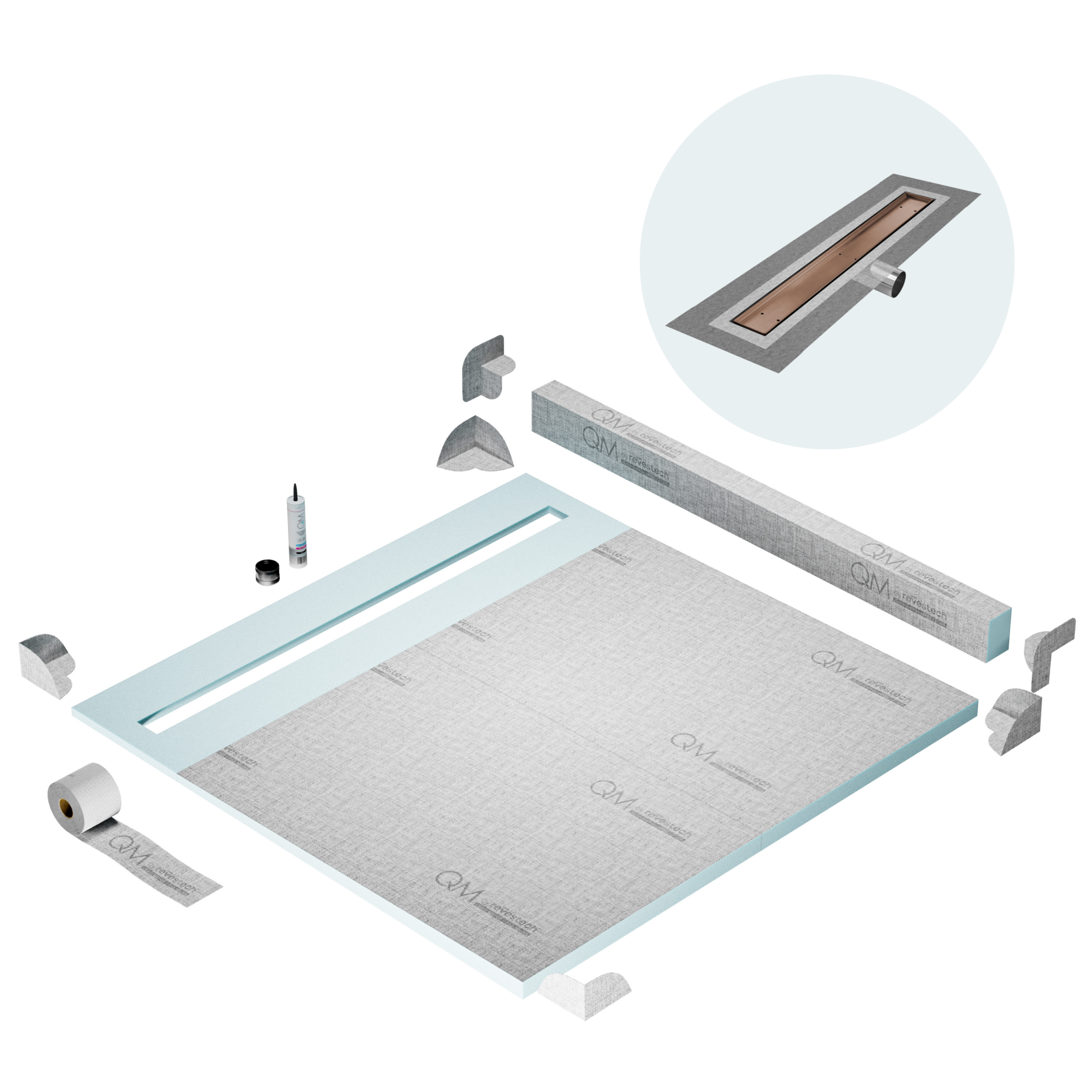 Committed to sustainable construction, avoiding environmental impact, and ensuring a healthy environment. QM shower pan and waterproofing membranes are 100% recyclable.
