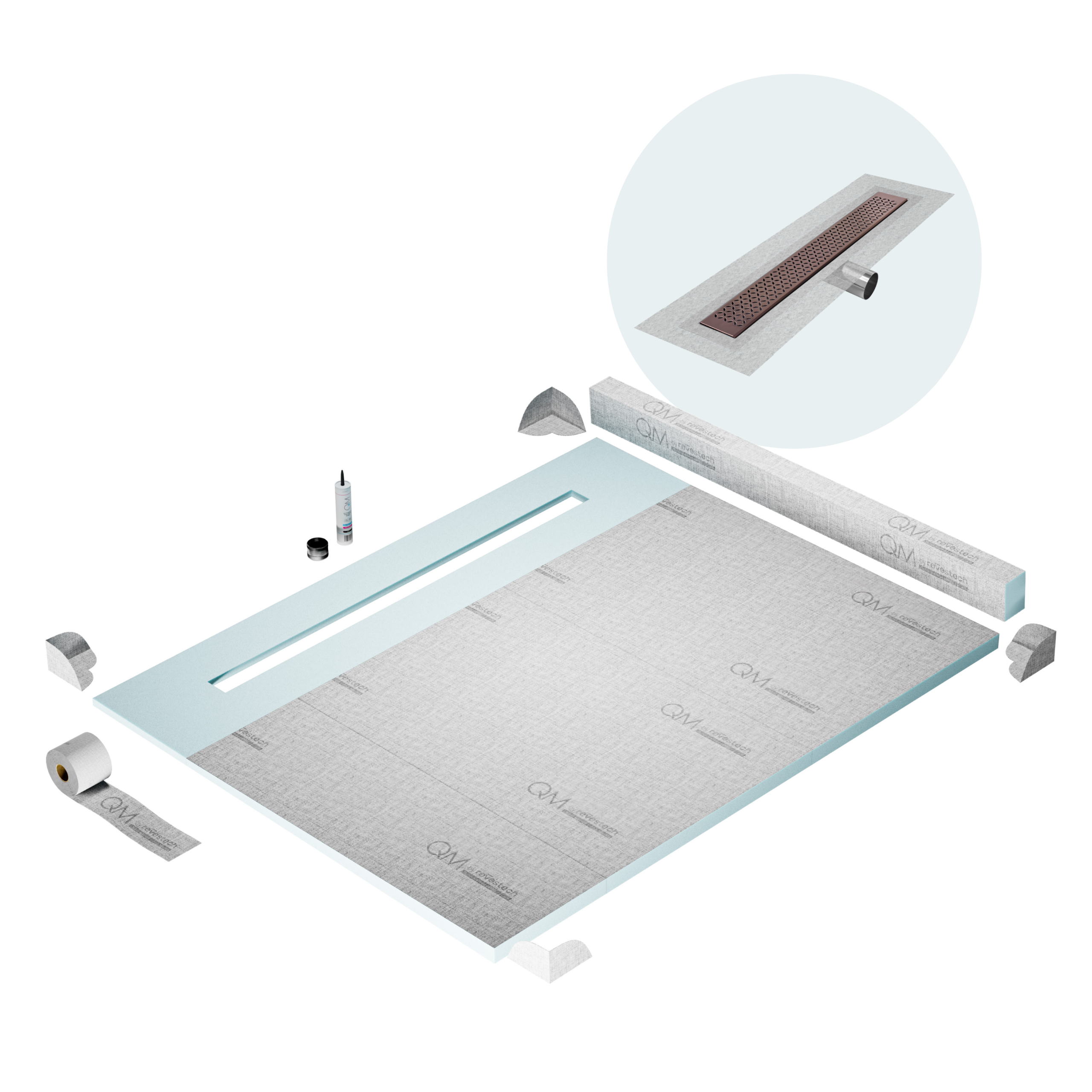 Committed to sustainable construction, avoiding environmental impact, and ensuring a healthy environment. QM shower pan and waterproofing membranes are 100% recyclable.