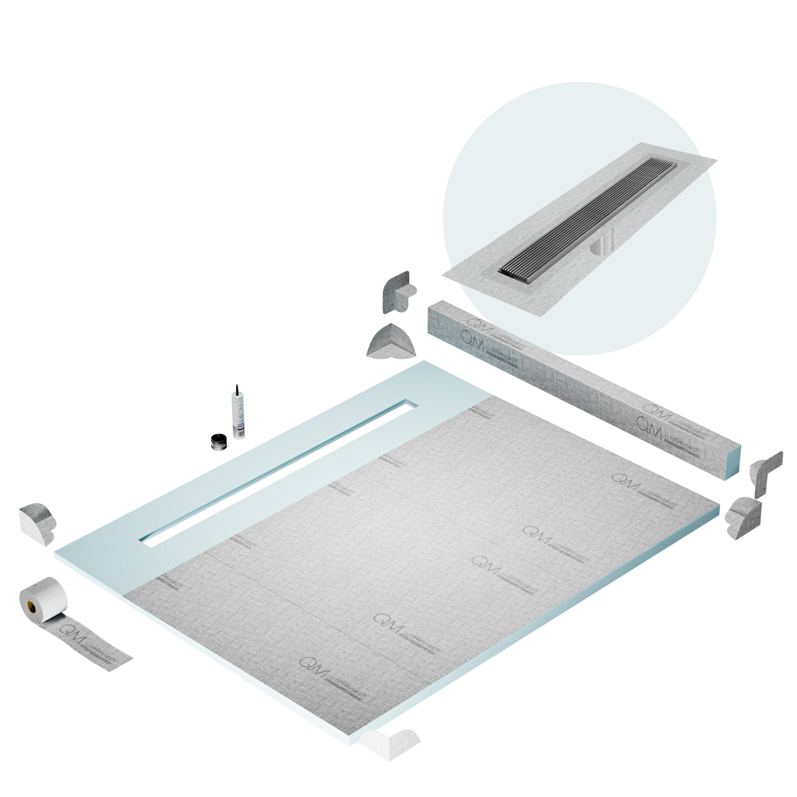 Committed to sustainable construction, avoiding environmental impact, and ensuring a healthy environment. QM shower pan and waterproofing membranes are 100% recyclable.