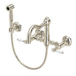 ROHL Acqui® Wall Mount Bridge Kitchen Faucet With Sidespray And Column Spout In Italian Brass