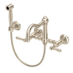 ROHL Acqui® Wall Mount Bridge Kitchen Faucet With Sidespray And Column Spout In Polished Nickel