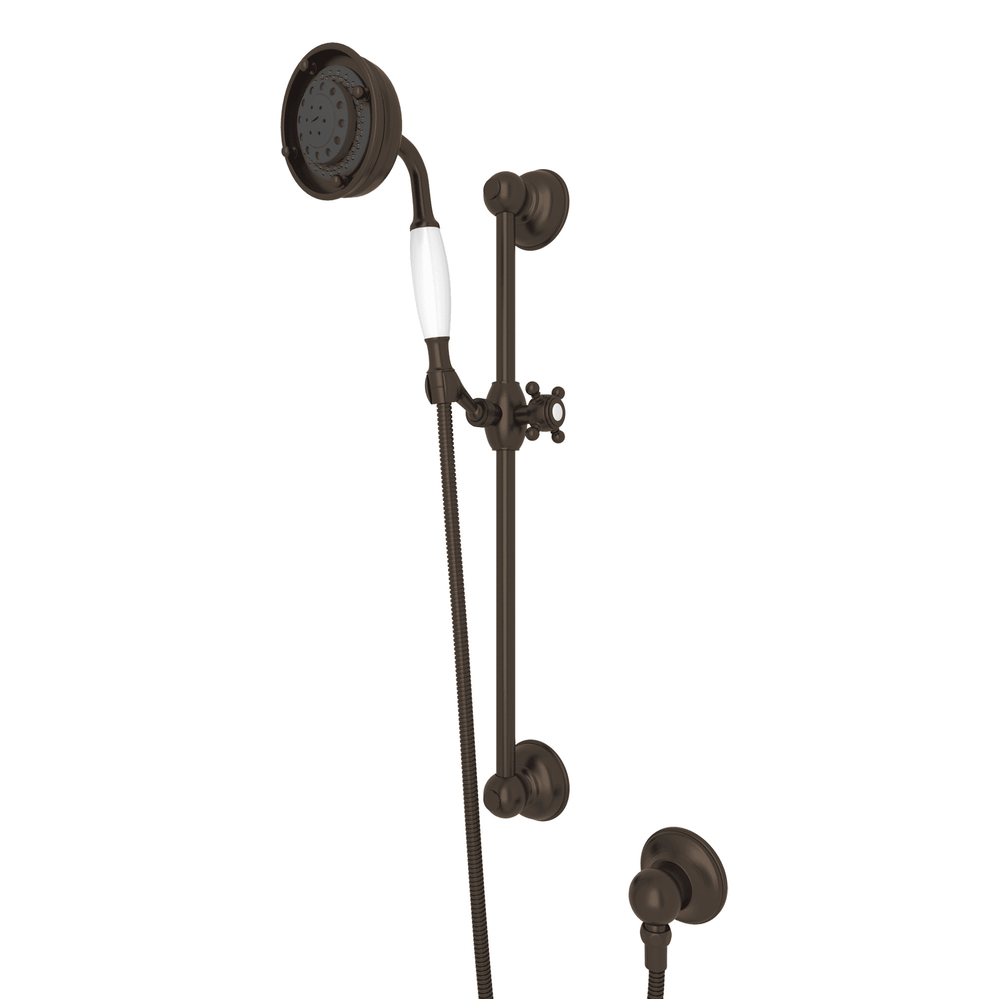 ROHL Handshower Set With 22″ Slide Bar and 3-Function Handshower In Tuscan Brass