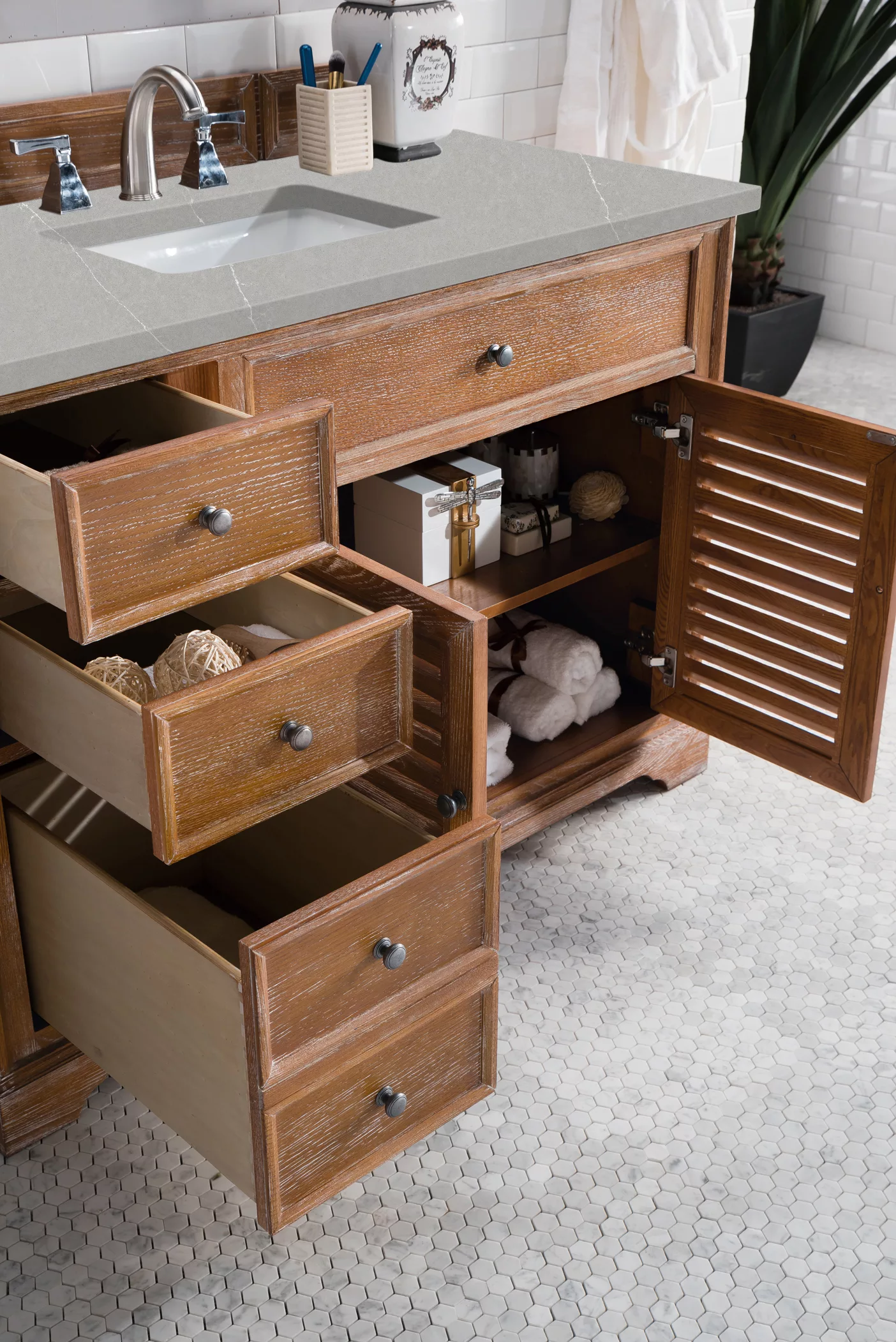 Savannah 48″ Single Vanity, Driftwood w/ 3 CM Eternal Serena Quartz Top