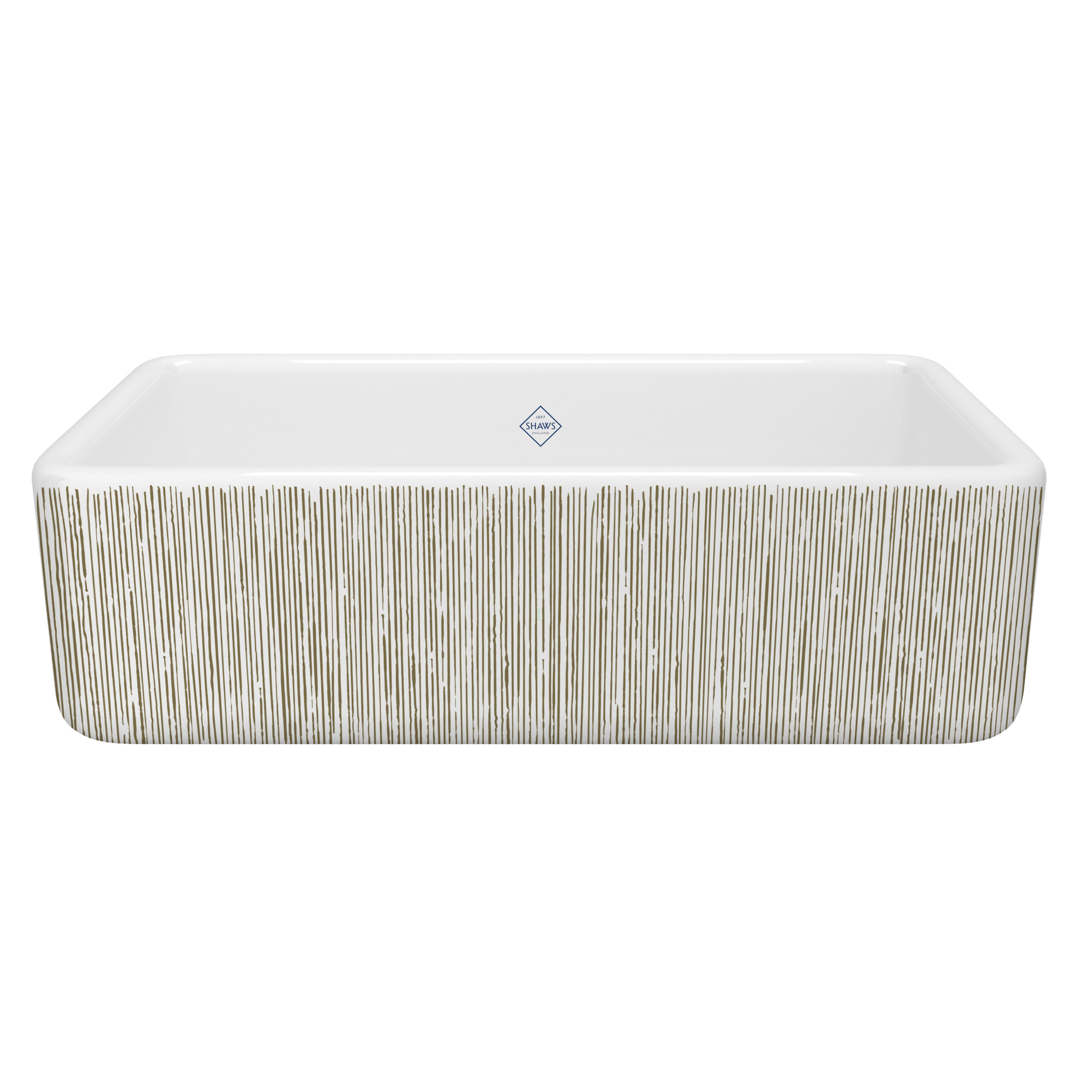 Shaws Lancaster™ 33″ Single Bowl Farmhouse Apron Front Fireclay Kitchen Sink With Lines Design In Lines Gold