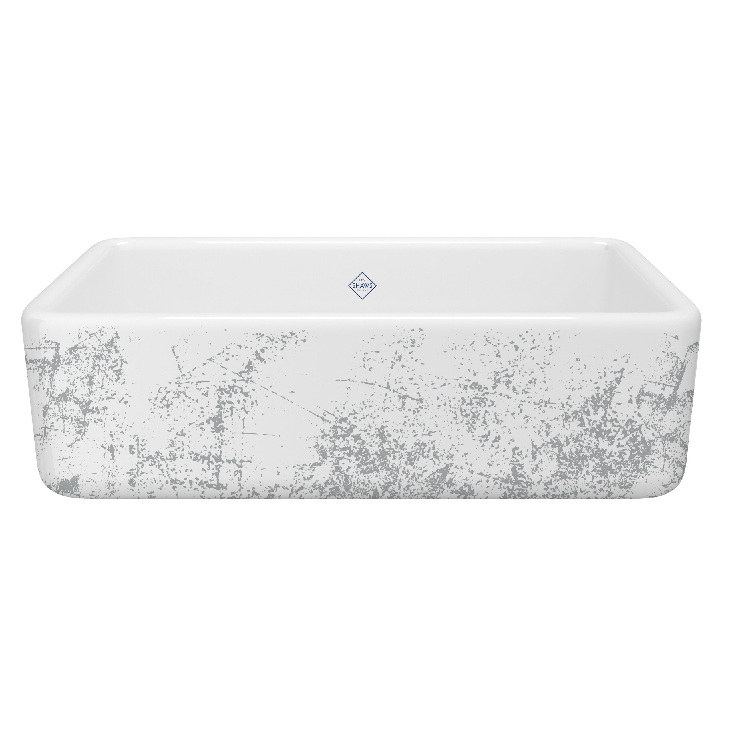 Shaws Lancaster™ 33″ Single Bowl Farmhouse Apron Front Fireclay Kitchen Sink With Metallic Design In Metallic Silver