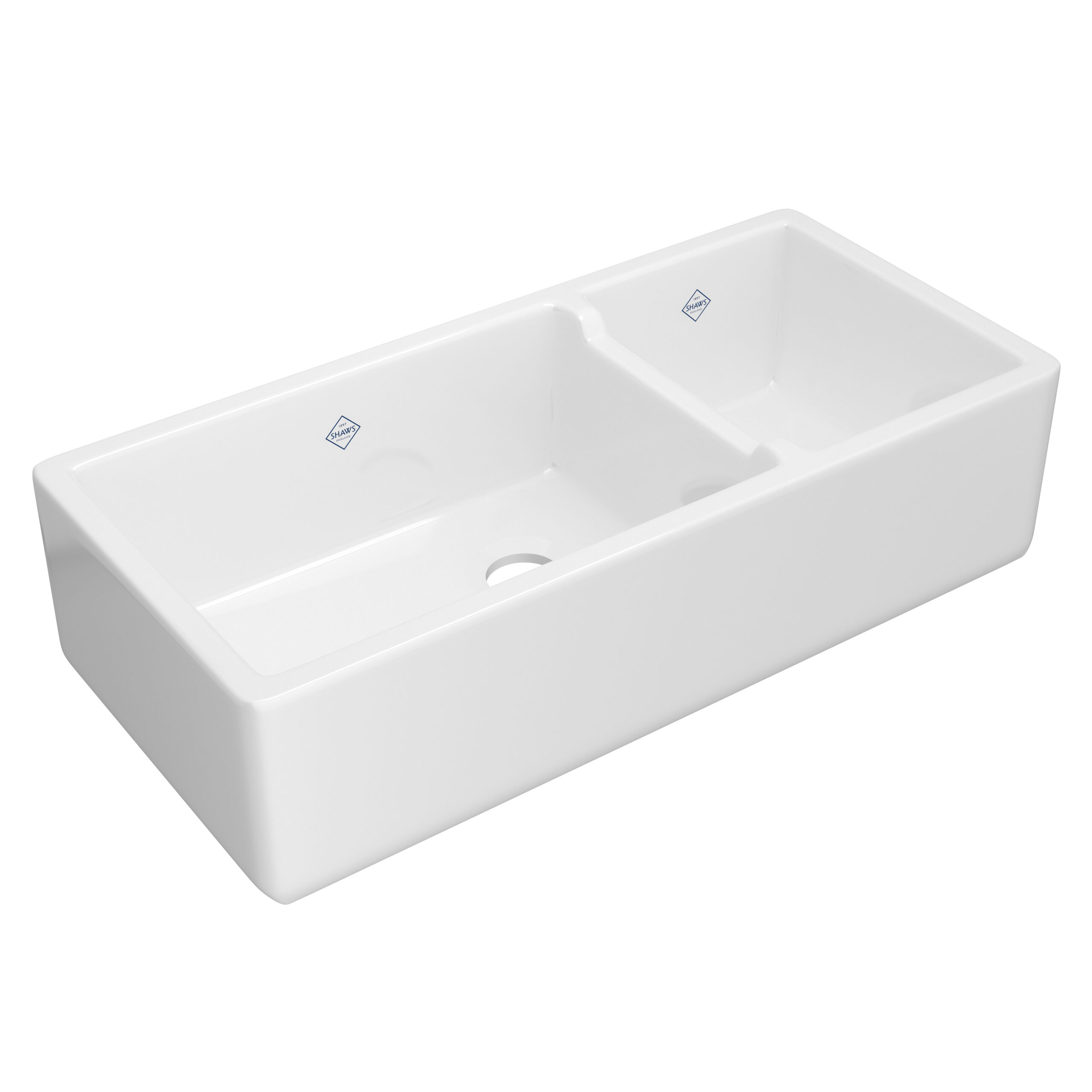 Shaws Lancaster™ 40″ Double Bowl Farmhouse Apron Front Fireclay Kitchen Sink In White (WH)