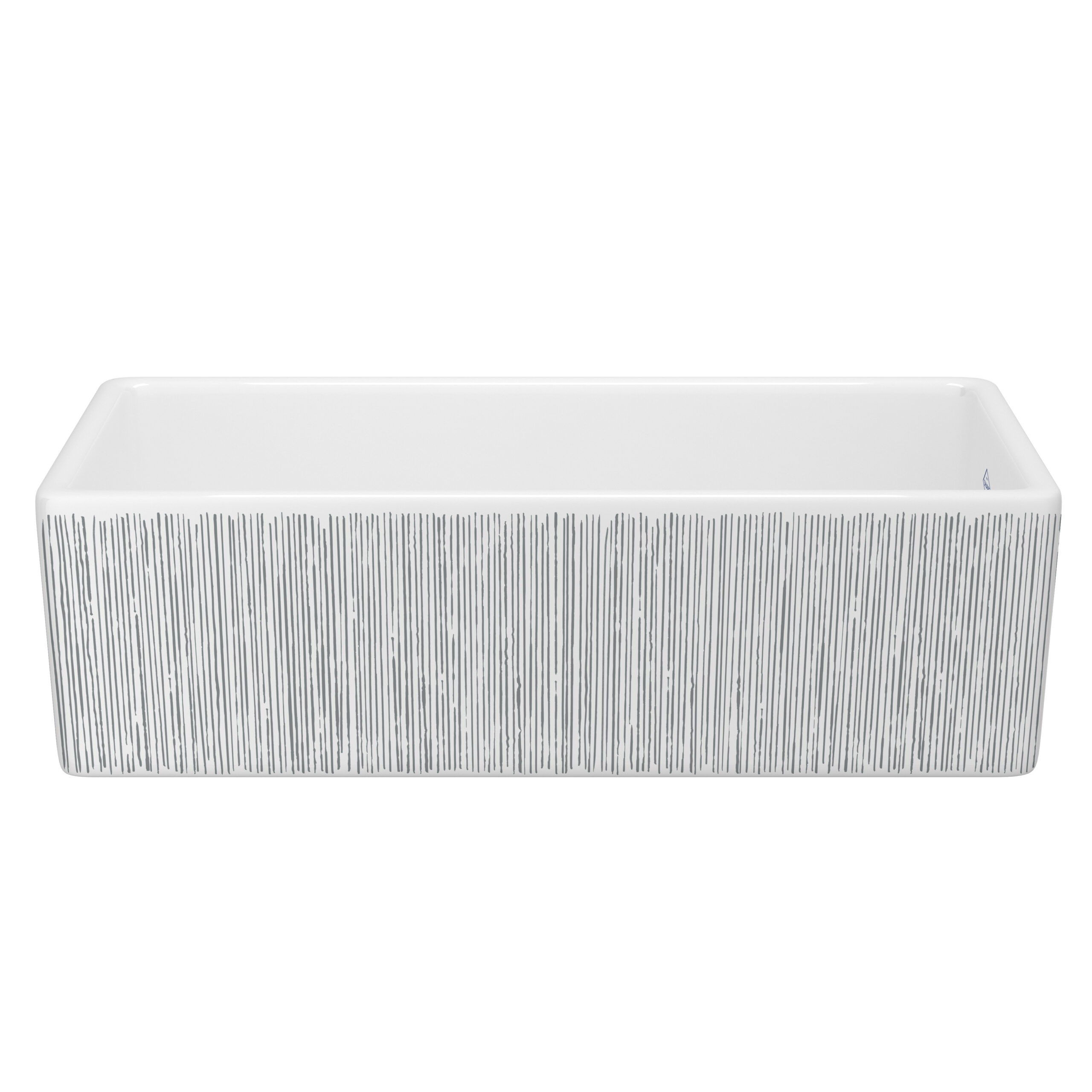 Shaws Shaker™ 36″ Single Bowl Farmhouse Apron Front Fireclay Kitchen Sink With Lines Design In Lines Silver