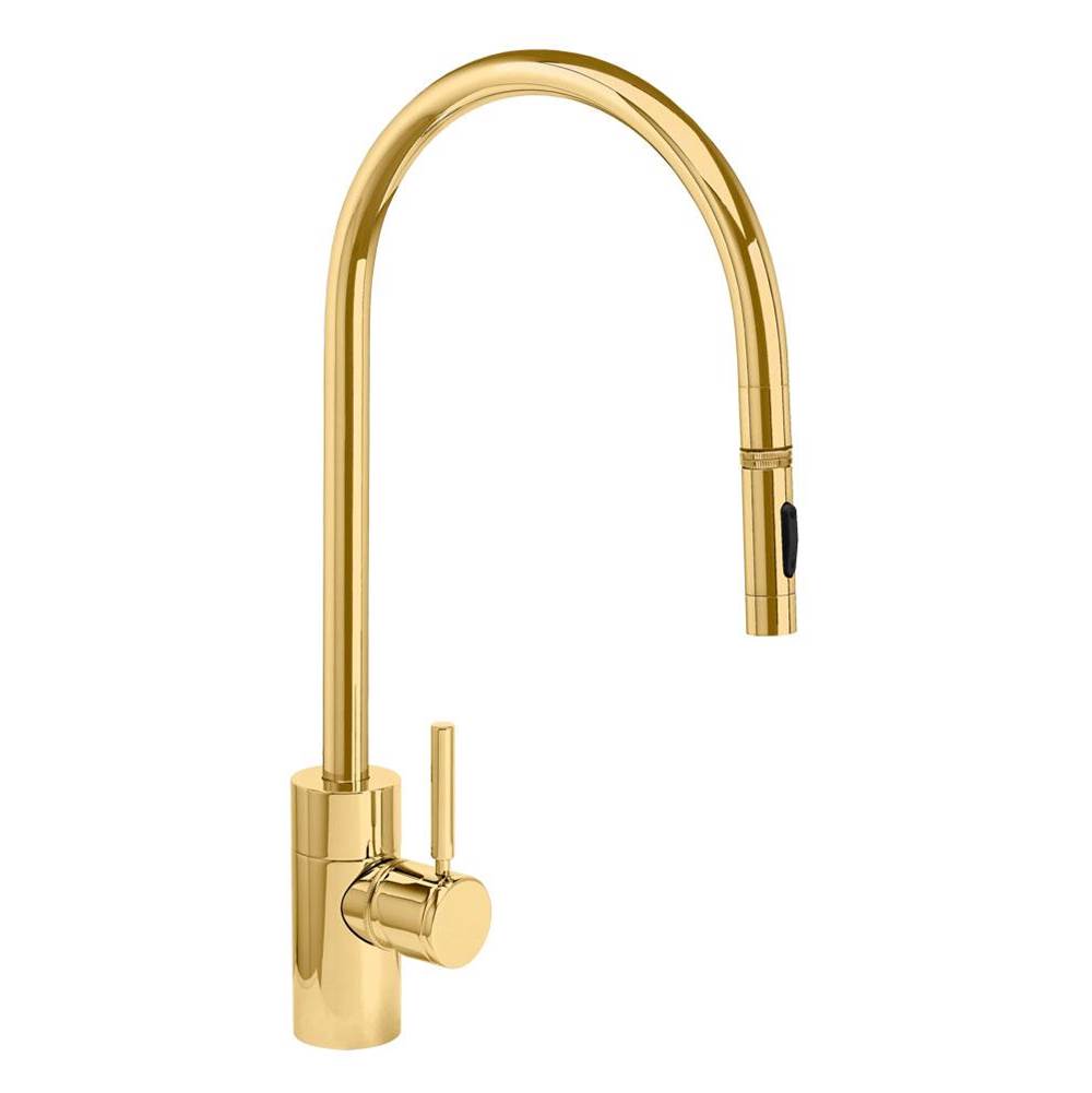 Waterstone Contemporary Extended Reach PLP Pulldown Faucet – Toggle Sprayer – Polished Brass