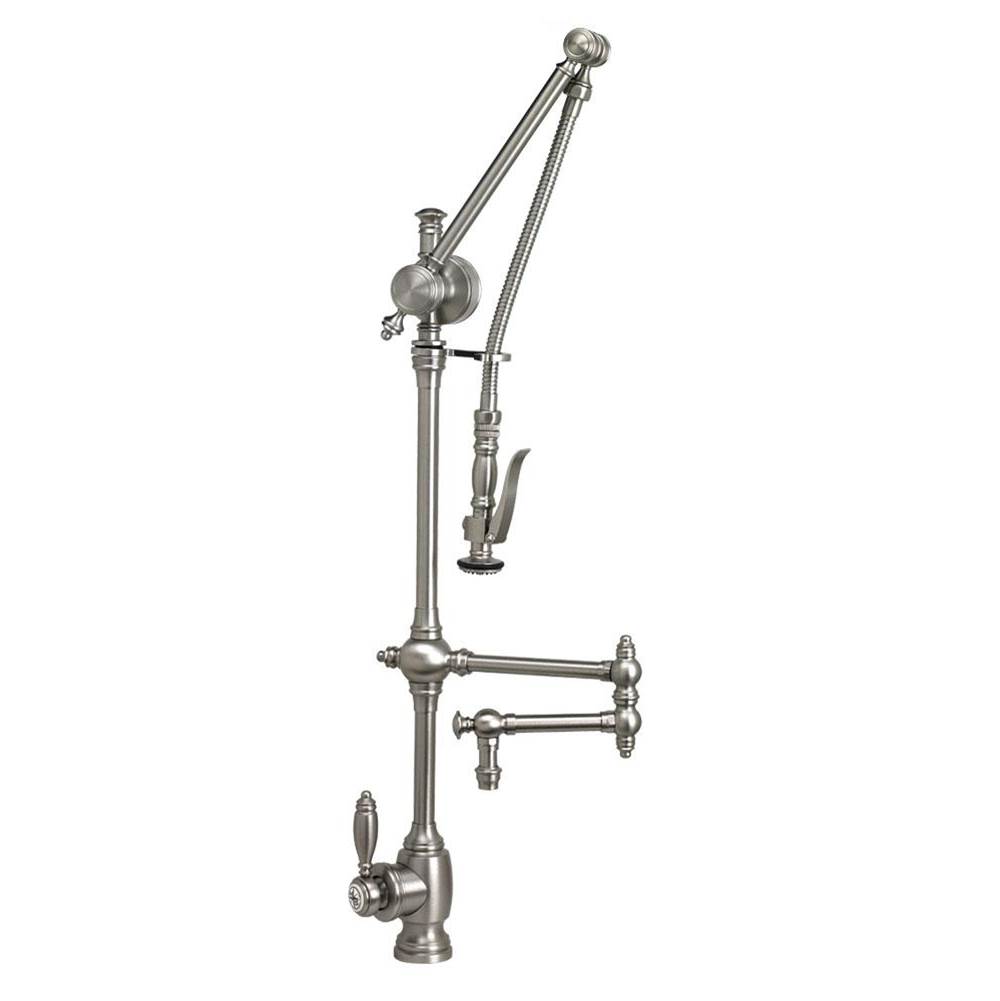 Waterstone Traditional Gantry Pulldown Faucet – 12” Articulated Spout – Satin Brass